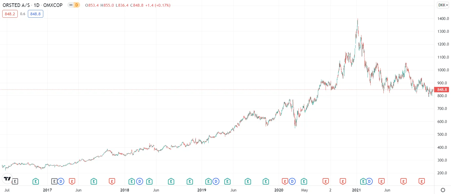 I alt er aktien faldet med 31 procent i 2021: Dette store fald er dog ikke unikt for Ørsted.