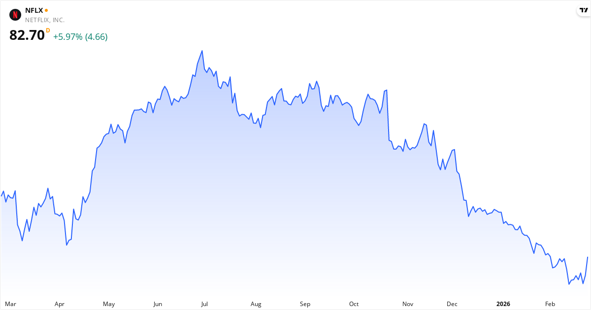 Investorerne reagerede positivt på nyheden om, at Netflix har trukket sit bud på WBD-aktiver tilbage, især da det skete midt i Paramouts 31 USD bud. Tilbagetrækningen, der bevarede selskabets kapital, resulterede i en aktieoptur på 9% umiddelbart efter annonceringen, hvilket udfordrede forventninger om et fald. Aktien lukkede dagen på 84,58 USD efter at have ramt et højdepunkt på 86,50 USD, hvilket afspejler den store handelsvolumen som følge af nyheden om WBD-bududgangen.[1]