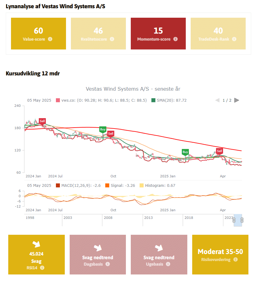Alt i alt er Vestas for svag til en investering, både teknisk og fundamentalt.
