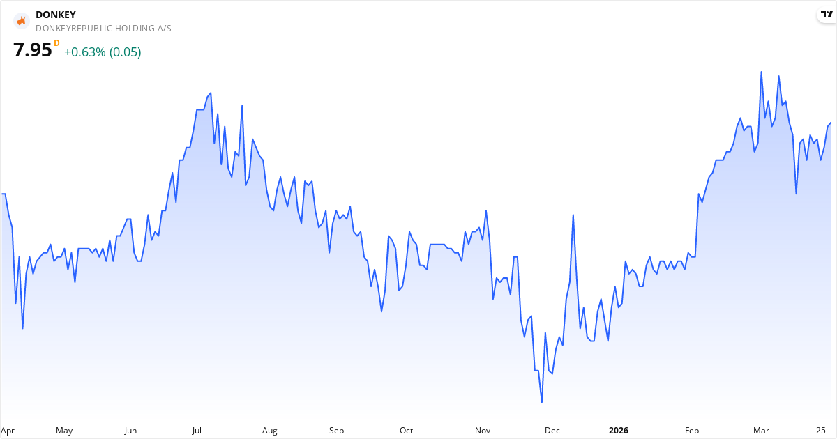 Donkeyrepublic Holding AS aktiekurs – Kursudvikling 2026. Opdateret 31. Mar 2026.