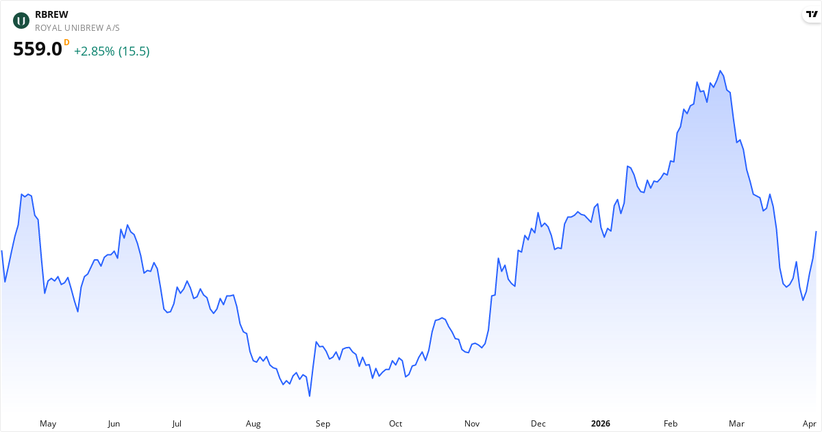 Royal Unibrew aktiekurs – Kursudvikling 2026. Opdateret 08. Apr 2026.
