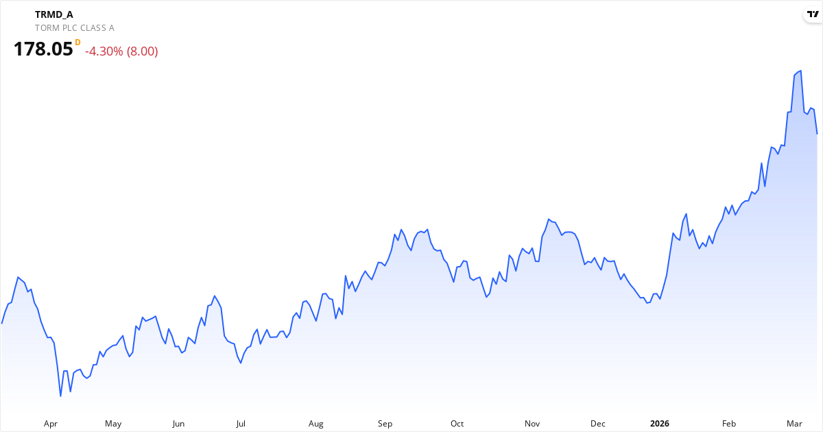 TORM aktiekurs – Kursudvikling 2026. Opdateret 12. Mar 2026.