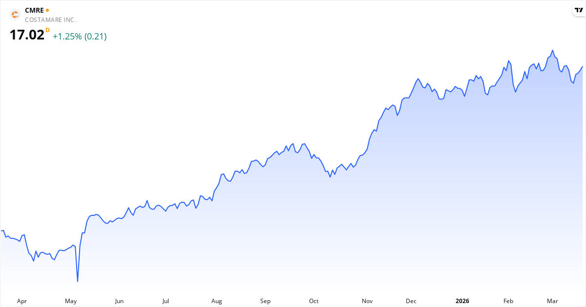 Costamare Inc. driver en ret stor forretning med at eje og udleje containerskibe til rederier over hele verden. De tjener altså penge på at lade andre sejle med deres skibe. Costamare har en kæmpe flåde, der tæller 76 containerskibe og 45 tørlastskibe. Det gør dem til en vigtig spiller i global søtransport, da de dækker både containerfragt og tørlast. Virksomheden blev grundlagt helt tilbage i 1974 og har hovedsæde i Monaco. Costamare Inc. er interessant for investorer, der vil have eksponering mod shipping, specielt fordi de har så alsidig en flåde. Læs om virksomhedenNøgletal for Costamare