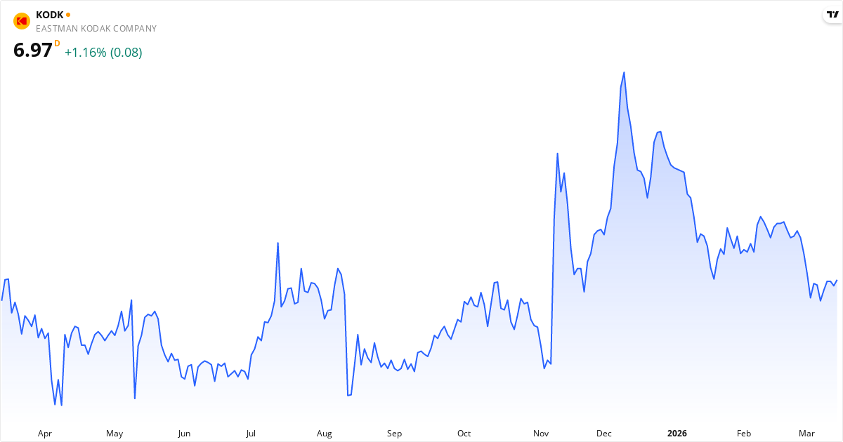 Eastman Kodak aktiekurs – Kursudvikling 2026. Opdateret 16. Mar 2026.