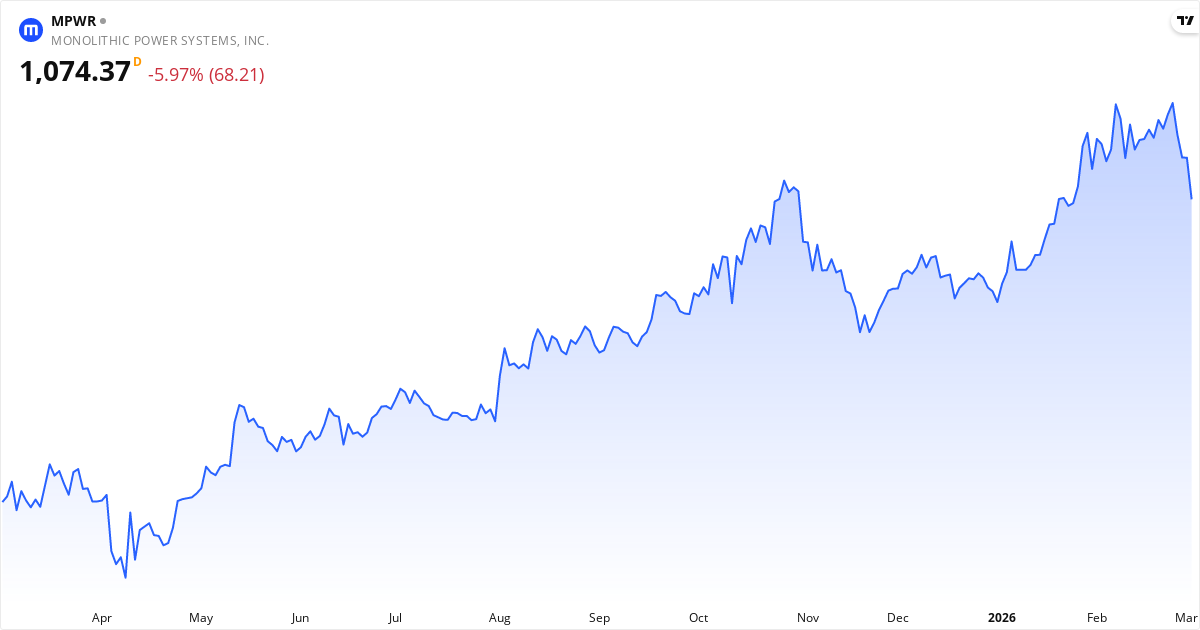 Monolithic Power Systems aktiekurs – Kursudvikling 2026. Opdateret 05. Mar 2026.