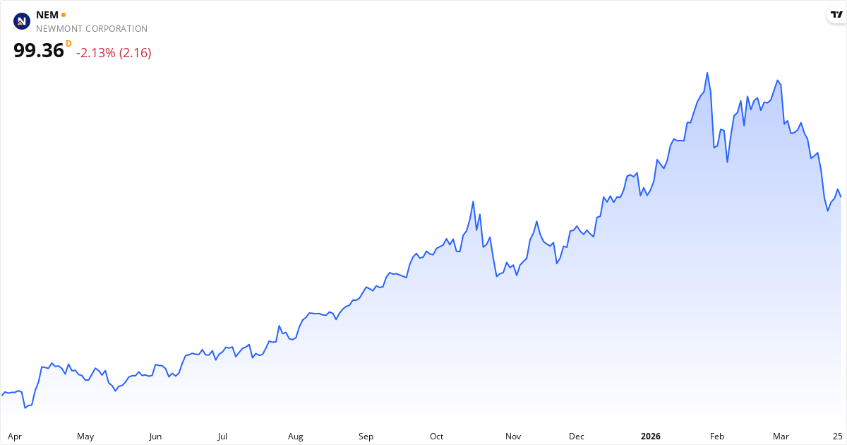 Newmont aktiekurs – Kursudvikling 2026. Opdateret 27. Mar 2026.