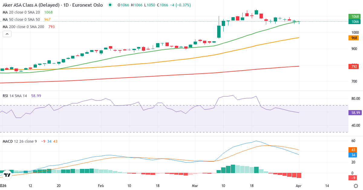 Der nächste Bericht von Aker A wird am 8. Mai 2026 veröffentlicht. Dieser Bericht deckt das erste Quartal (Q1) ab und endete am 31. März 2026.Technische Analyse von Aker A 2026 – Signal: Starker Kauf