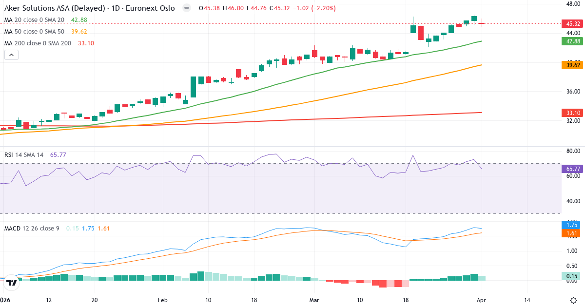 Der nächste Bericht von Aker Solutions A wird am 30. April 2026 veröffentlicht. Dieser Bericht deckt das erste Quartal (Q1) ab und endete am 31. März 2026.Technische Analyse von Aker Solutions A 2026 – Signal: Starker Kauf