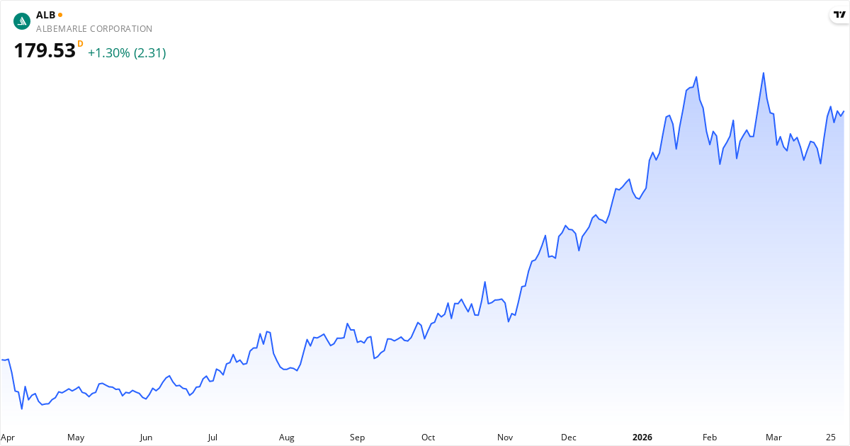 Albemarle veröffentlicht den nächsten Bericht am 06. Mai 2026. Die Aktie wird derzeit zu 177.20 $ gehandelt.