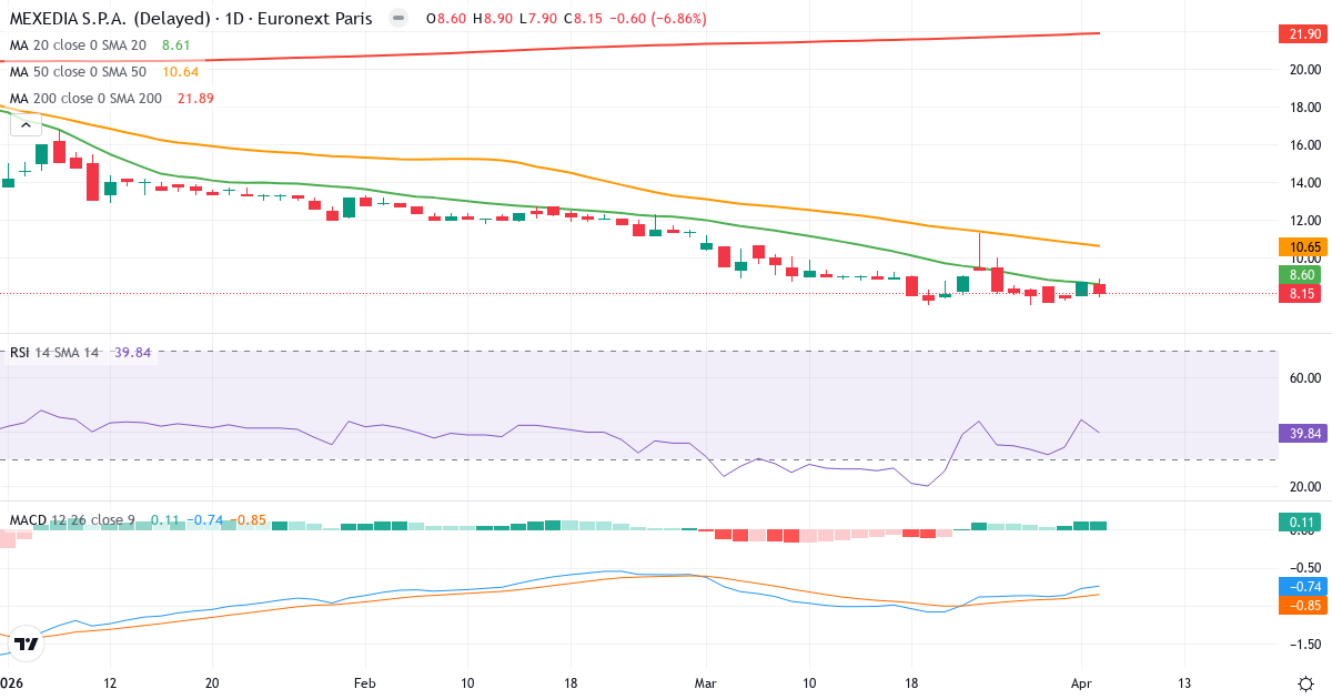 Death Cross: Der 50-Tage-Durchschnitt (10.64) liegt unter dem 200-Tage-Durchschnitt (24.63), was ein klassisches bärisches Signal für Airtime Partecipazioni SpA ist.
