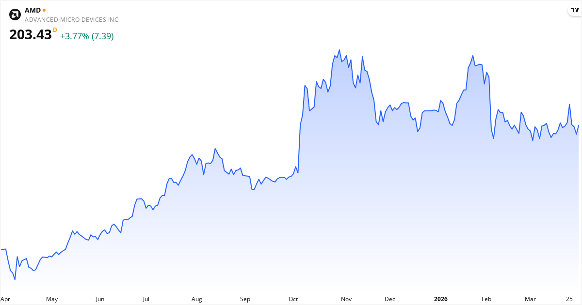Advanced Micro Devices veröffentlicht den nächsten Bericht am 05. Mai 2026. Die Aktie wird derzeit zu 211.44 $ gehandelt. Mit einem KGV von 75.1 wird der Markt genau beobachten, ob die Gewinne die Erwartungen erfüllen.