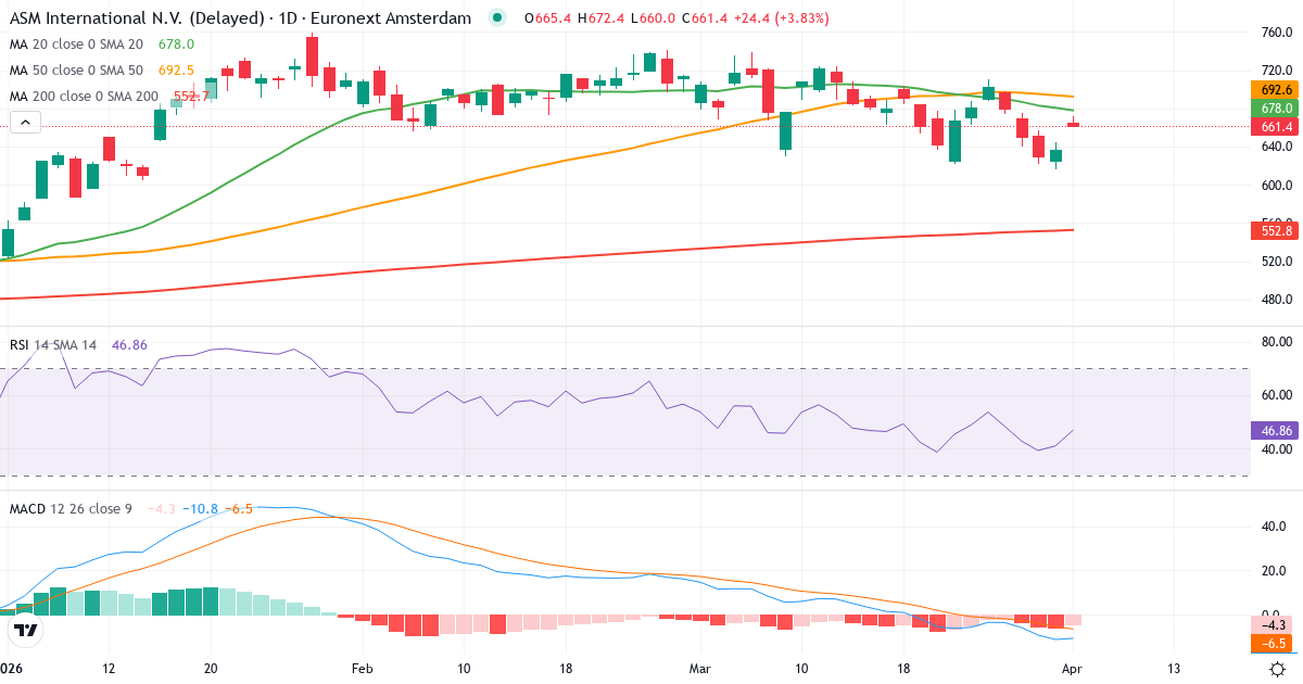 Der nächste Bericht von ASM International wird am 21. April 2026 veröffentlicht. Dieser Bericht deckt das erste Quartal (Q1) ab und endete am 31. März 2026.Technische Analyse von ASM International 2026 – Signal: Abwarten