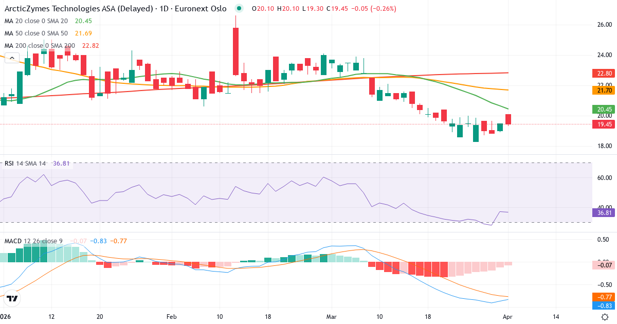 Death Cross: Der 50-Tage-Durchschnitt (21.74) liegt unter dem 200-Tage-Durchschnitt (22.81), was ein klassisches bärisches Signal für ArcticZymes Technologies ASA ist.