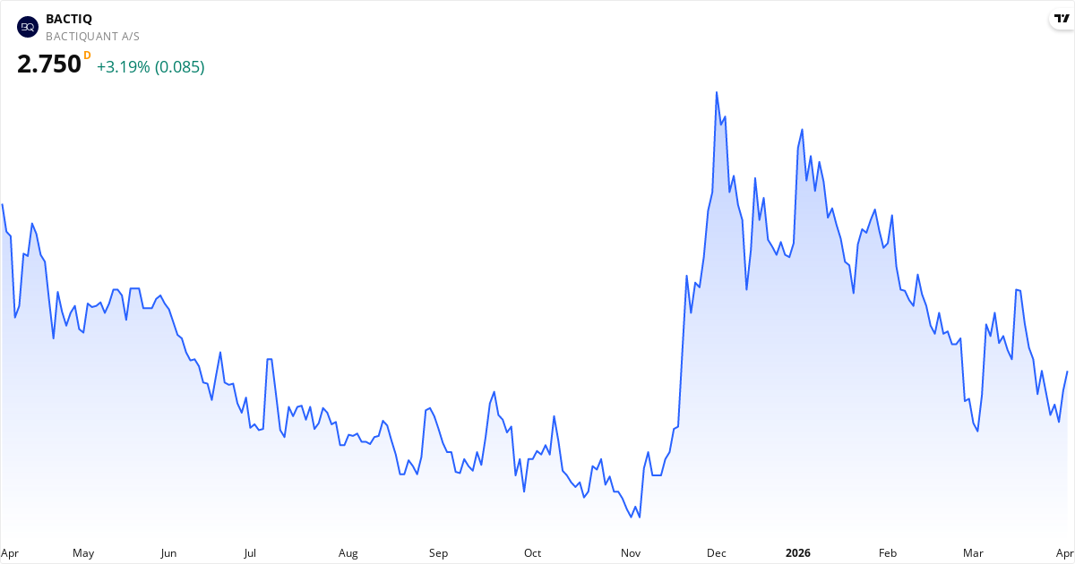 Golden Cross: Der 50-Tage-Durchschnitt (2.96) liegt über dem 200-Tage-Durchschnitt (2.76), was ein klassisches bullisches Signal für Bactiquant A/S ist.