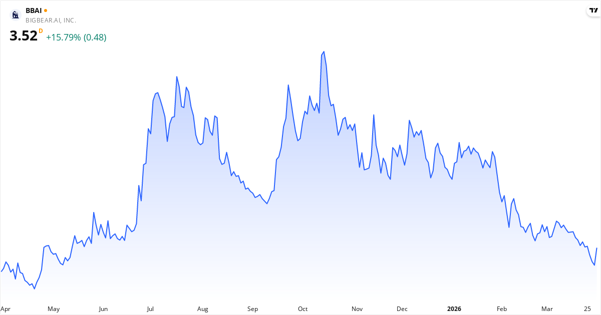 BigBear.ai technische Analyse – Candlestick-Diagramm mit RSI und MACD. Aktualisiert am 01. Apr 2026.