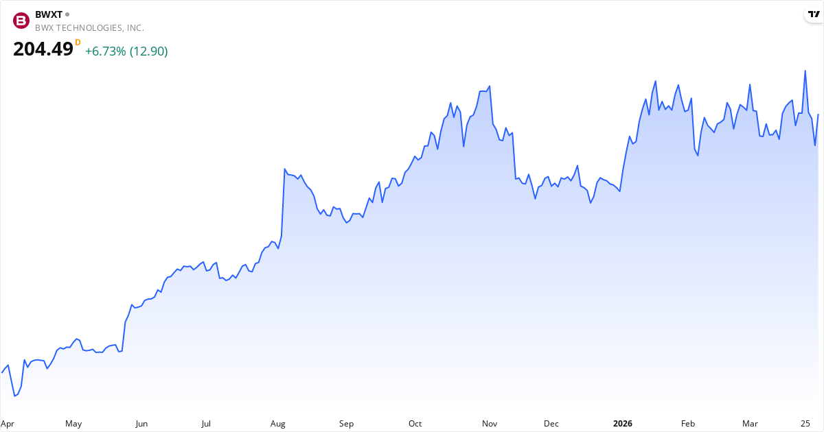 BWXT ist insbesondere bekannt für die Produktion von Präzisionsteilen für die Atomreaktoren der Marine, entwickelt aber auch kritische Brennstoffe und Zusammensetzungen für andere Regierungszwecke. Zu ihren Produkten gehören spezielle Ventile und Kupplungen für die Schifffahrt sowie Reaktorbrennstoffelemente für Universitäten. Kommerziell liefert BWX Technologies Dampfturbogeneratoren, Brennstoffmanagementsysteme und Druckbehälter für die Kernenergieindustrie. Das Unternehmen ist global tätig und operiert in mehreren Ländern. Mehr über das Unternehmen lesen