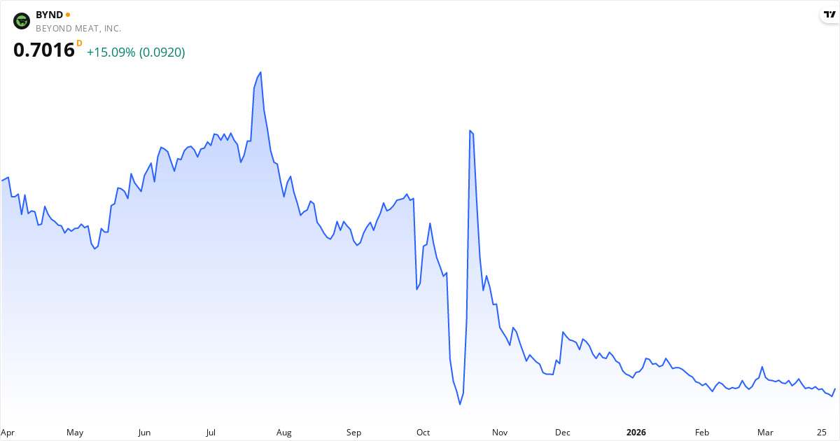 Beyond Meat veröffentlicht den nächsten Bericht am 13. Mai 2026. Die Aktie wird derzeit zu 0.63 $ gehandelt.