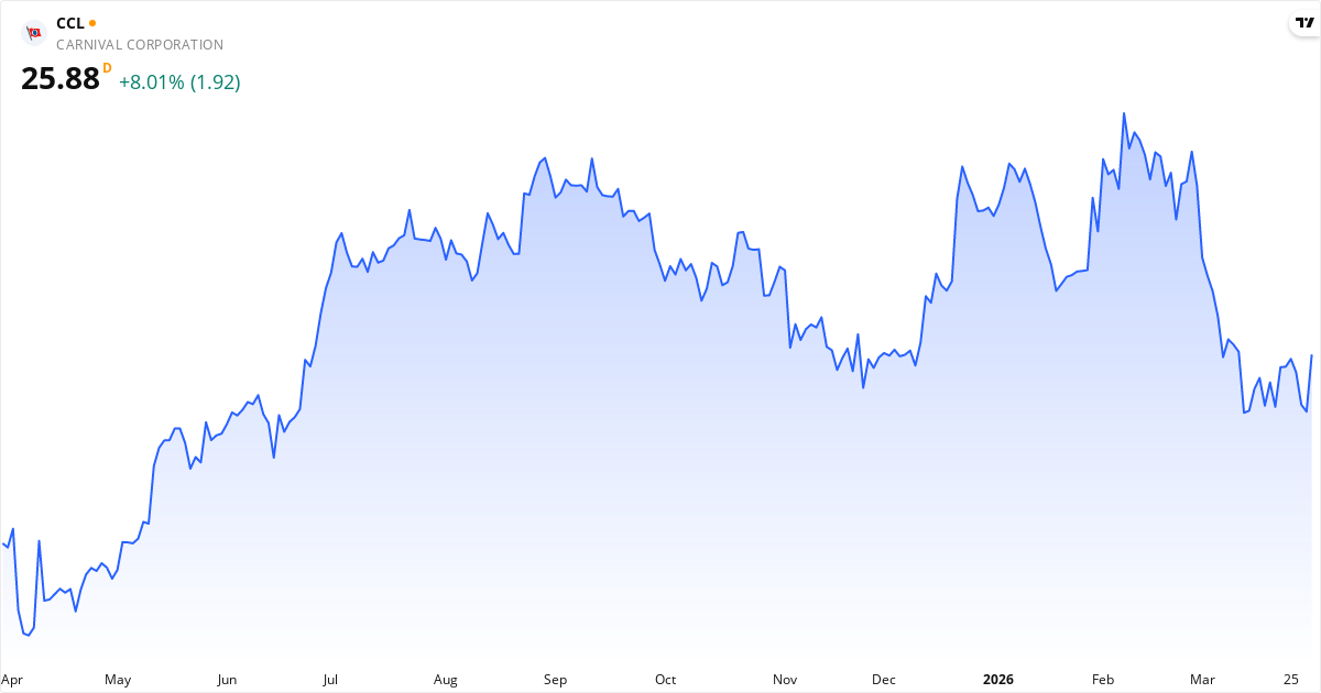 Der aktuelle Kurs beträgt $26.515, was Carnival Corporation & in die Kategorie unterbewertet einordnet. Die Aktie wird als unterbewertet angesehen, wenn der Kurs unter $32.058 liegt, und als überbewertet, wenn der Kurs $39.182 übersteigt.