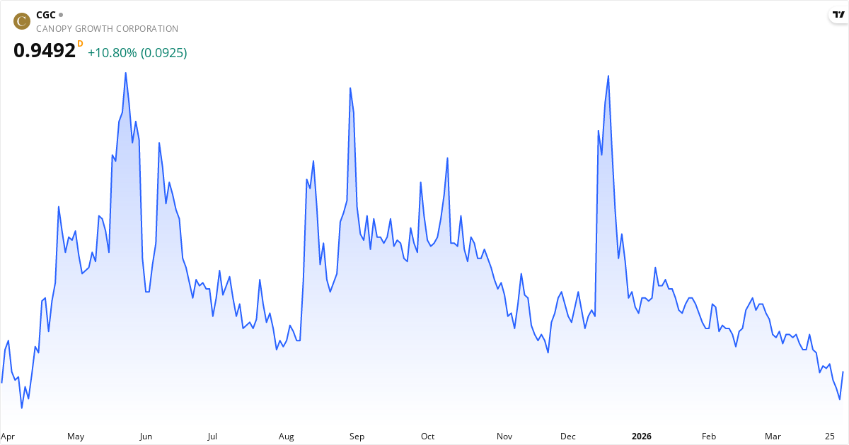 Canopy Growth veröffentlicht den nächsten Bericht am 29. Mai 2026. Die Aktie wird derzeit zu 0.96 $ gehandelt.