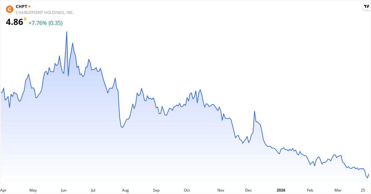 ChargePoint veröffentlicht den nächsten Bericht am 03. Juni 2026. Die Aktie wird derzeit zu 4.85 $ gehandelt.