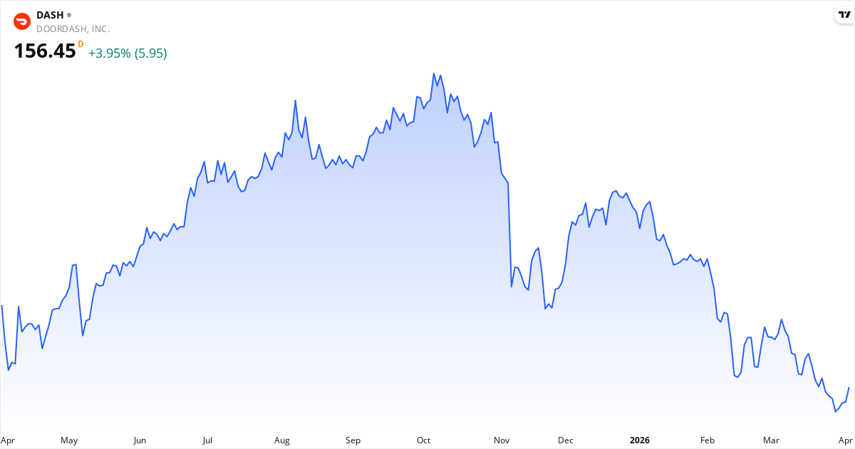 DoorDash technische Analyse – Candlestick-Diagramm mit RSI und MACD. Aktualisiert am 03. Apr 2026.