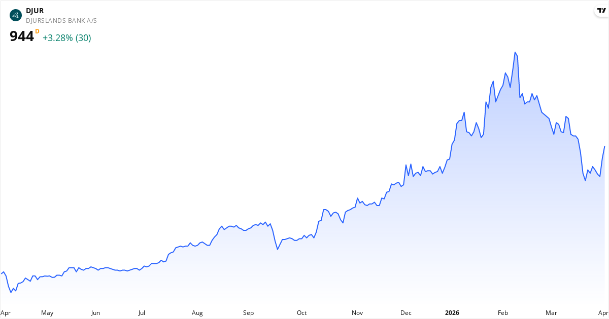 Djurslands Bank Aktienkurs – Kursentwicklung 2026. Aktualisiert 01. Apr 2026.