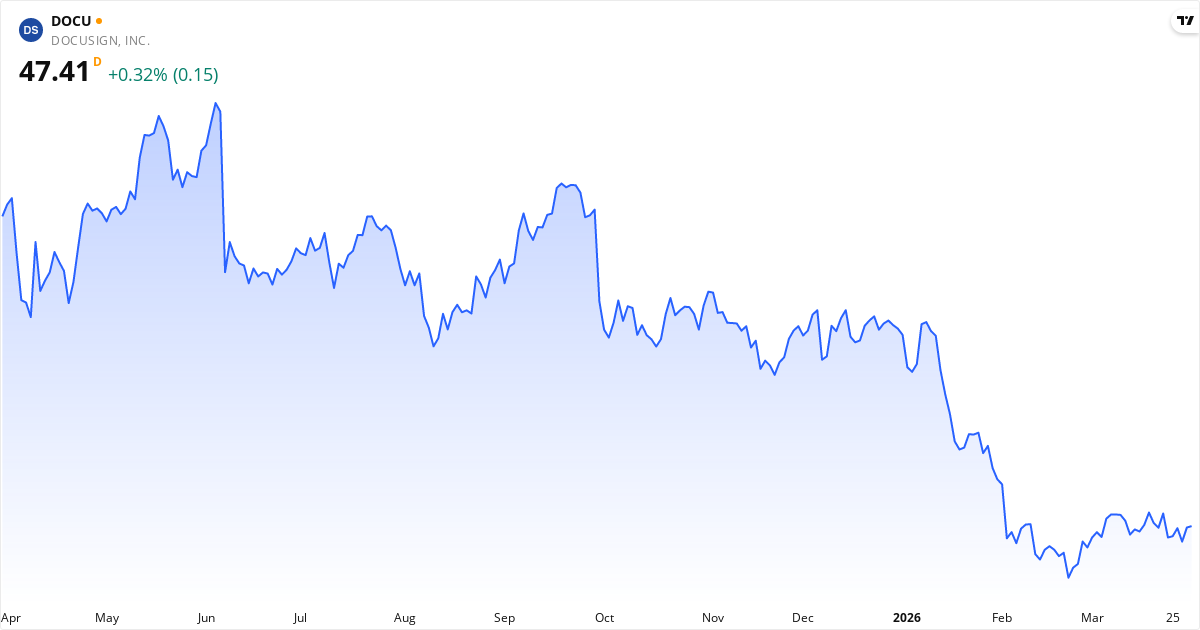 DocuSign veröffentlicht den nächsten Bericht am 04. Juni 2026. Die Aktie wird derzeit zu 47.29 $ gehandelt. Mit einem KGV von 31.9 wird der Markt genau beobachten, ob die Gewinne die Erwartungen erfüllen.
