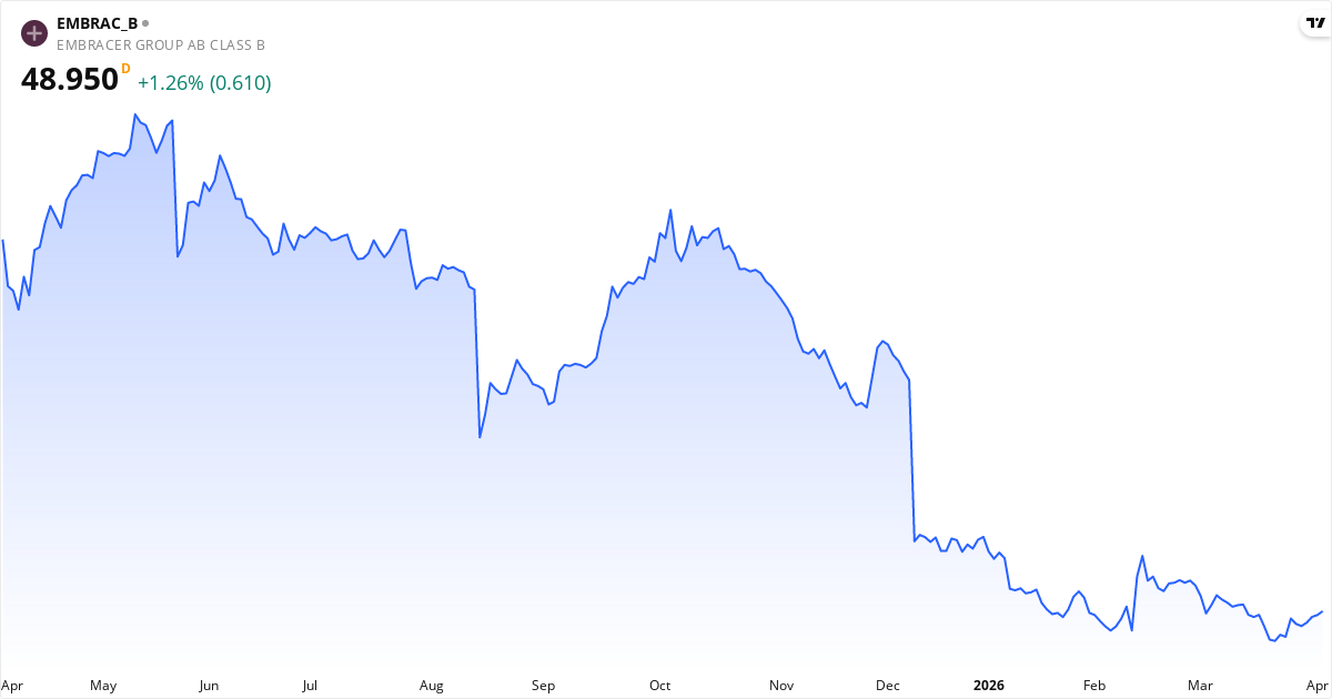 Death Cross: Der 50-Tage-Durchschnitt (49.60) liegt unter dem 200-Tage-Durchschnitt (79.92), was ein klassisches bärisches Signal für Embracer Group AB (publ) ist.