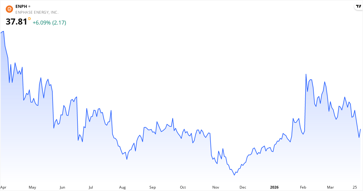 Enphase Energy veröffentlicht den nächsten Bericht am 28. April 2026. Die Aktie wird derzeit zu 38.58 $ gehandelt. Mit einem KGV von 27.6 wird der Markt genau beobachten, ob die Gewinne die Erwartungen erfüllen.