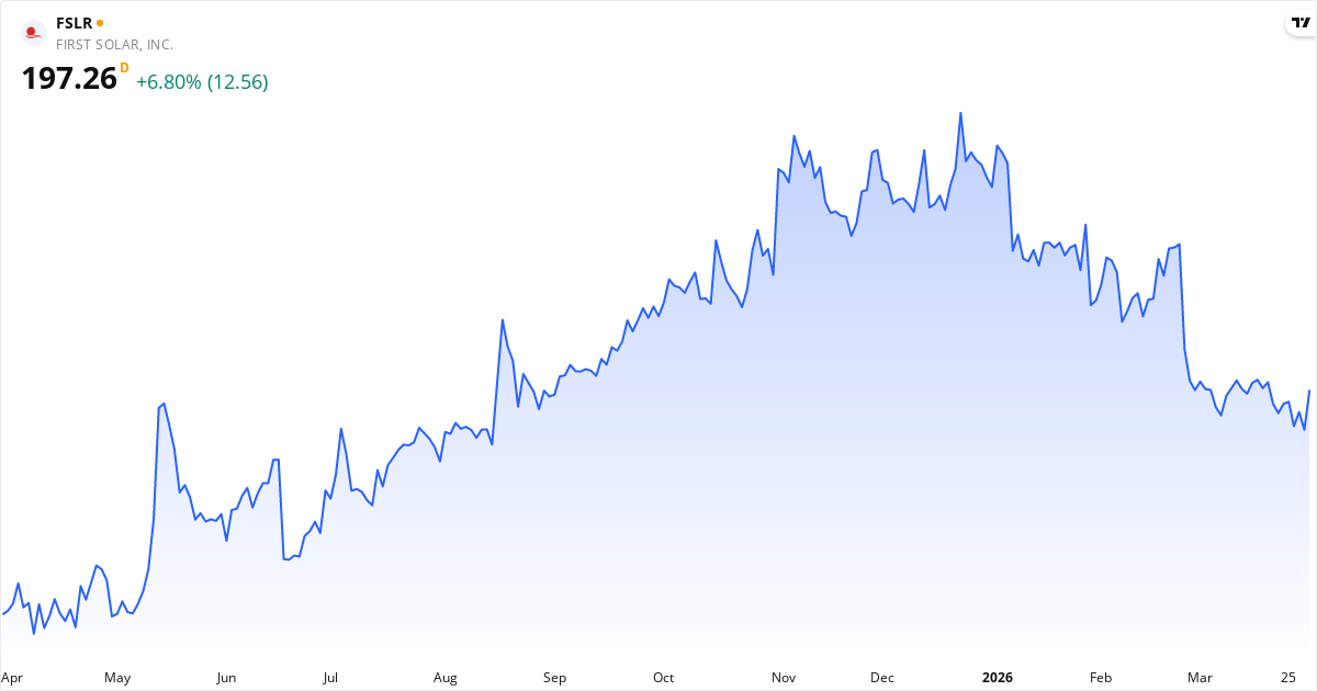 First Solar Aktienkurs – Kursentwicklung 2026. Aktualisiert 01. Apr 2026.