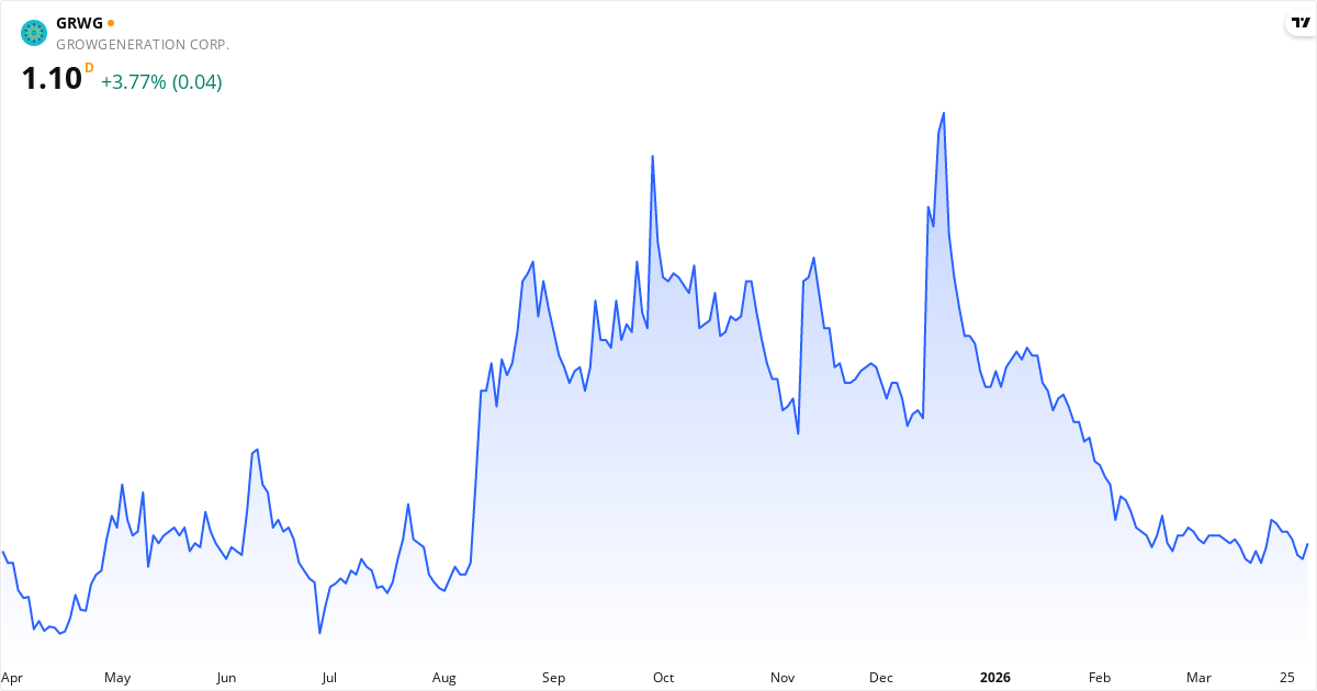 GrowGeneration veröffentlicht den nächsten Bericht am 13. Mai 2026. Die Aktie wird derzeit zu 1.10 $ gehandelt.