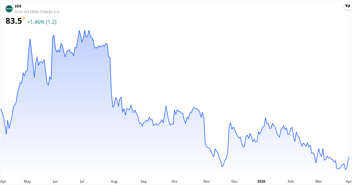HH International veröffentlicht den nächsten Bericht am 12. Mai 2026. Die Aktie wird derzeit zu 83.70 Kr. gehandelt.