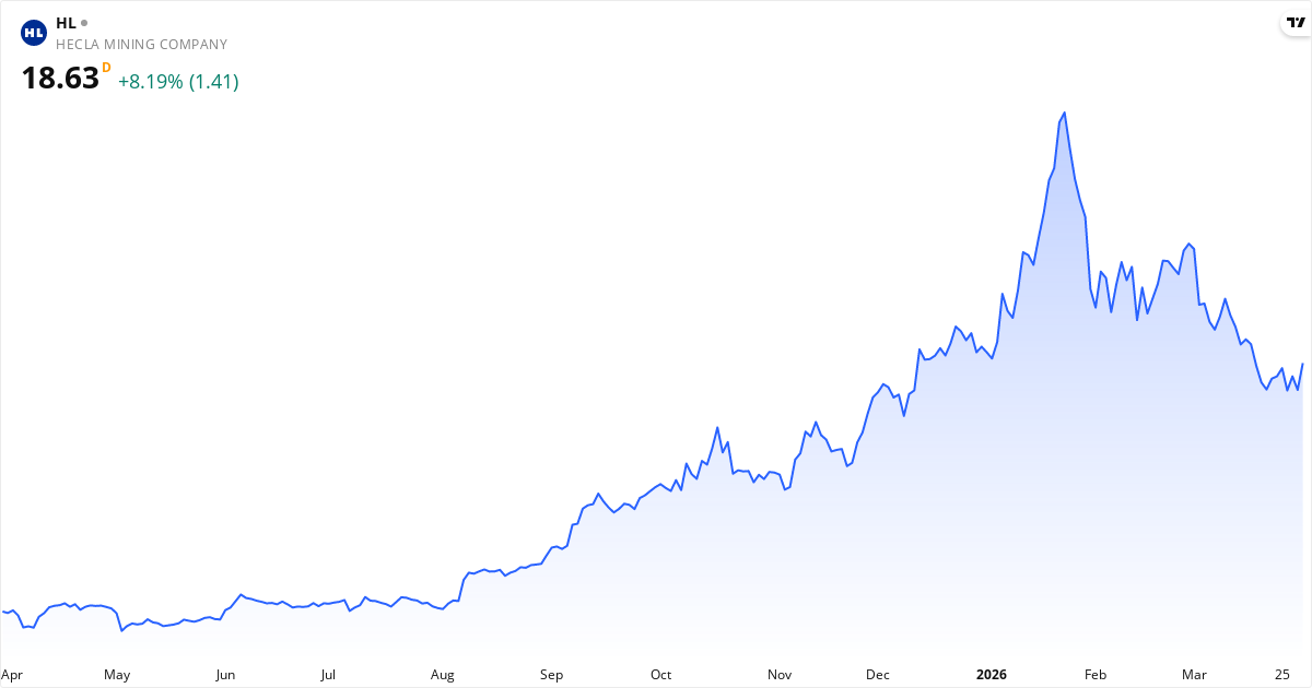 Die Zukunftsaussichten für Hecla Mining basierend auf aktuellen Daten: das durchschnittliche Kursziel der Analysten ist 26.40 $ (+35.9%); der nächste Bericht wird am 13/05-2026 veröffentlicht, was den Kurs beeinflussen kann; das KGV ist 35.1 (hoch – der Markt erwartet Wachstum). Beachten Sie, dass Aktienkurse von vielen Faktoren beeinflusst werden, einschließlich Berichten, Makroökonomie und Marktstimmung. Historische Renditen sind keine Garantie für zukünftige Renditen.