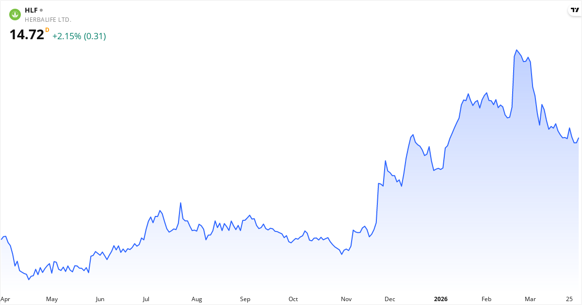 Die Zukunftsaussichten für Herbalife Nutrition basierend auf aktuellen Daten: das durchschnittliche Kursziel der Analysten ist 16.50 $ (+14.0%); der nächste Bericht wird am 05/05-2026 veröffentlicht, was den Kurs beeinflussen kann; das KGV ist 6.6 (niedrig – mögliche Value-Aktie). Beachten Sie, dass Aktienkurse von vielen Faktoren beeinflusst werden, einschließlich Berichten, Makroökonomie und Marktstimmung. Historische Renditen sind keine Garantie für zukünftige Renditen.