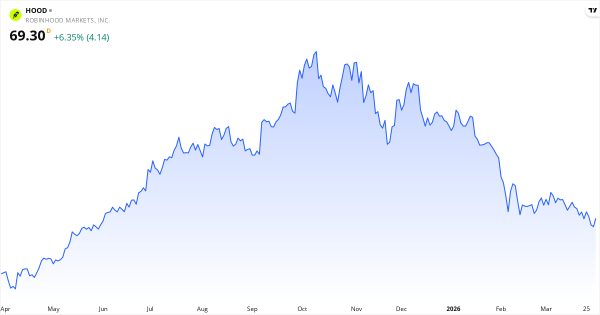 Robinhood Markets veröffentlicht den nächsten Bericht am 29. April 2026. Die Aktie wird derzeit zu 70.20 $ gehandelt. Mit einem KGV von 31.8 wird der Markt genau beobachten, ob die Gewinne die Erwartungen erfüllen.