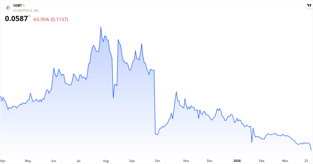 Death Cross: Der 50-Tage-Durchschnitt (0.29) liegt unter dem 200-Tage-Durchschnitt (0.97), was ein klassisches bärisches Signal für IO Biotech Inc. Common Stock ist.