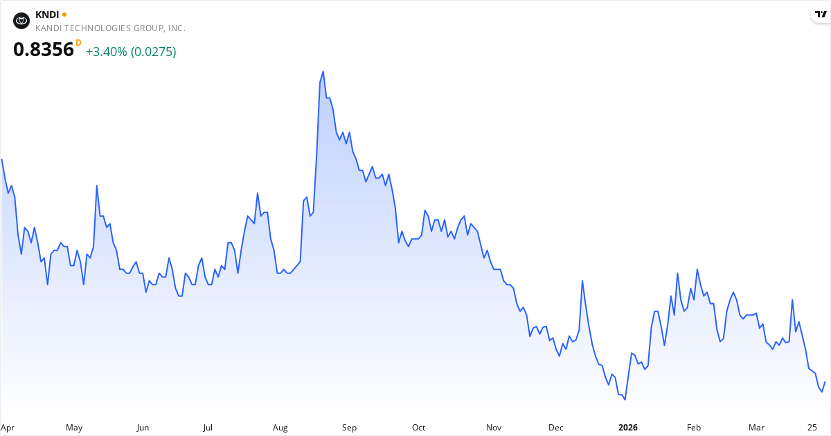 Kandi Technologies veröffentlicht den nächsten Bericht am 06. April 2026. Die Aktie wird derzeit zu 0.84 $ gehandelt.