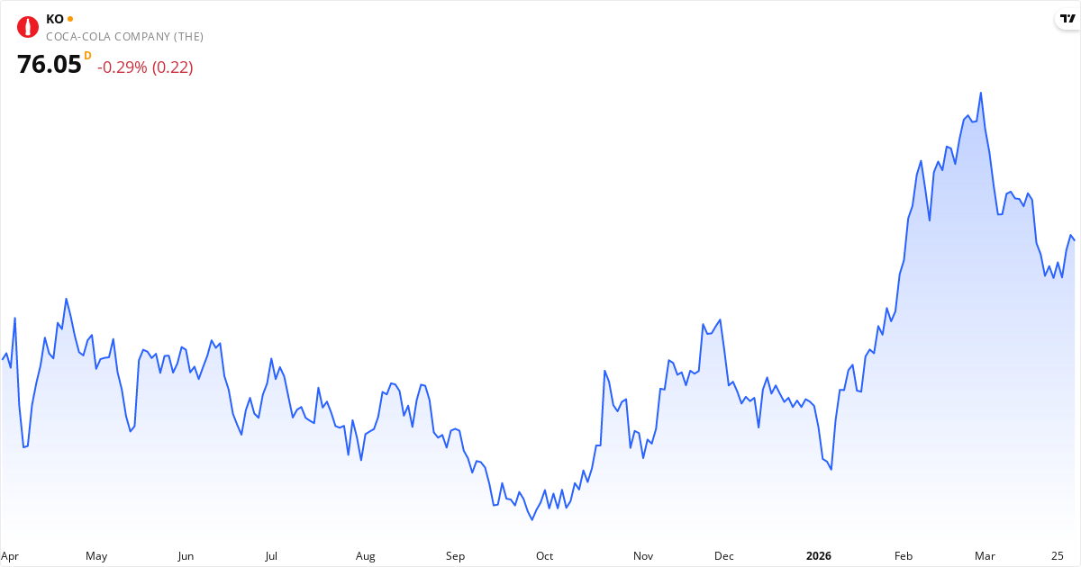 The Coca-Cola veröffentlicht den nächsten Bericht am 27. April 2026. Die Aktie wird derzeit zu 76.08 $ gehandelt. Mit einem KGV von 25.1 wird der Markt genau beobachten, ob die Gewinne die Erwartungen erfüllen.