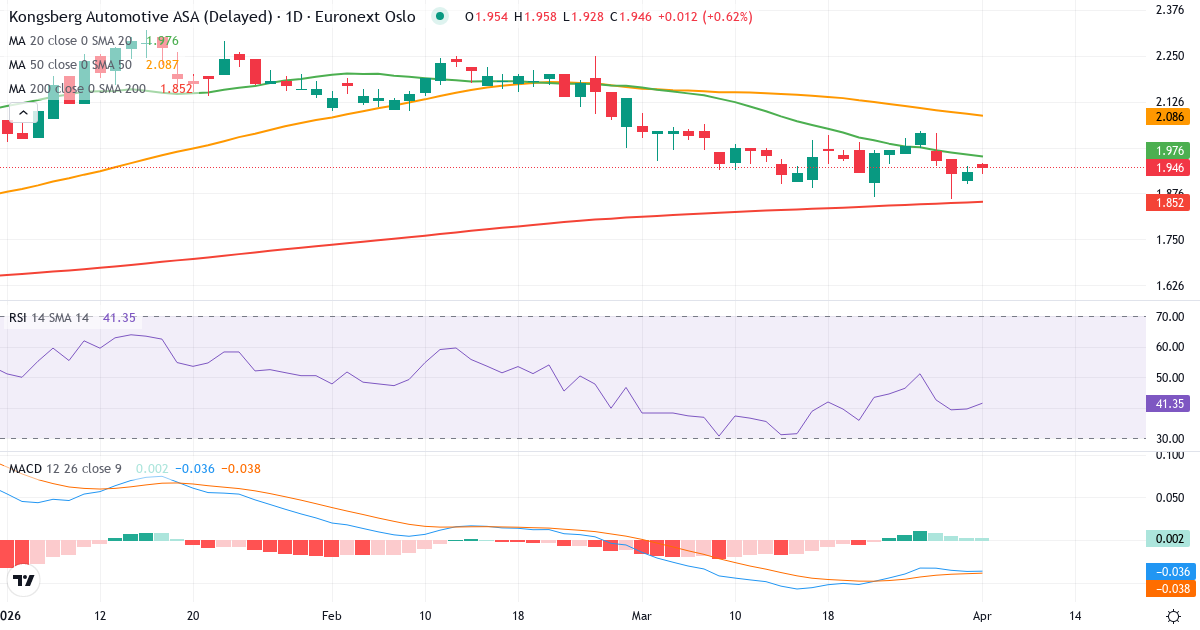 Der nächste Bericht von Kongsberg Automotive A wird am 30. April 2026 veröffentlicht. Dieser Bericht deckt das erste Quartal (Q1) ab und endete am 31. März 2026.Technische Analyse von Kongsberg Automotive A 2026 – Signal: Abwarten
