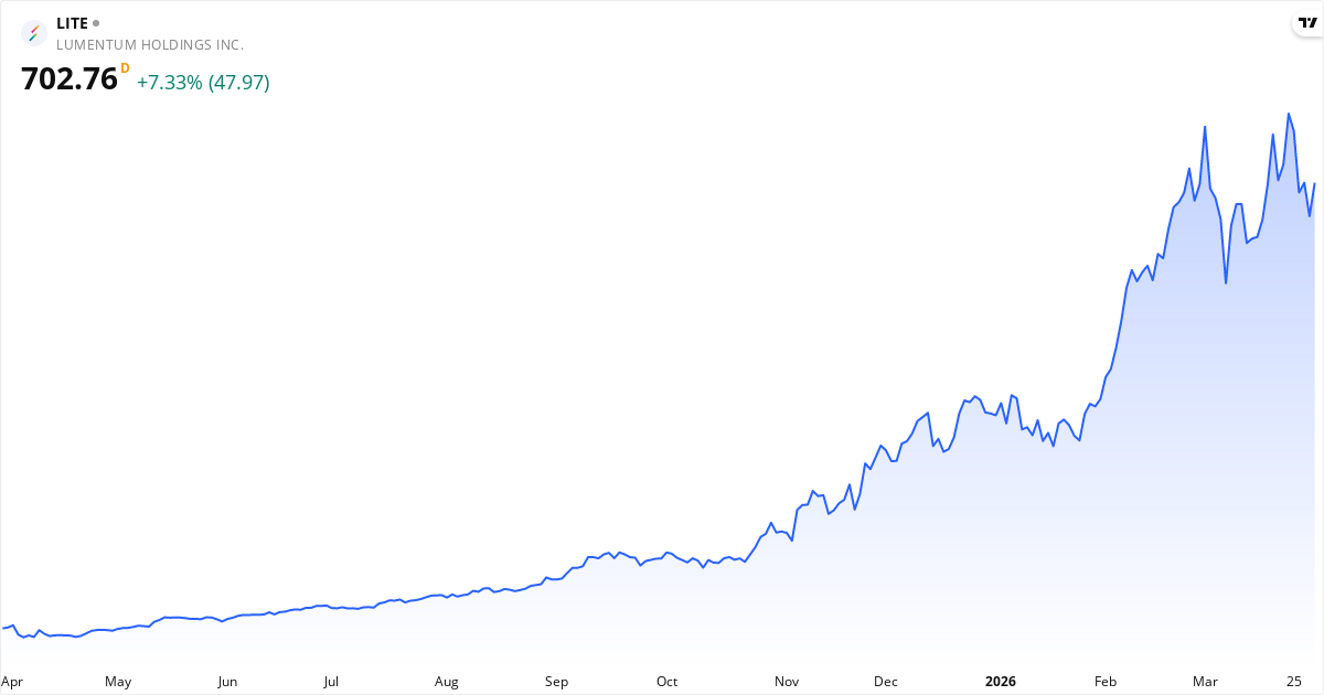 Lumentum Holdings Inc. stellt optische und photonische Produkte in Amerika, Asien-Pazifik, Europa, Nahost und Afrika her und vertreibt sie. Das Unternehmen operiert durch zwei Segmente: Cloud & Networking sowie Industrial Tech. Das Segment Cloud & Networking bietet optische und photonische Chips, Komponenten, Module und Teilsysteme an, die an Cloud-Rechenzentrumsbetreiber, KI/ML-Infrastrukturanbieter und Netzwerkgerätehersteller geliefert werden, die Cloud-Rechenzentren und Netzwerkinfrastrukturen aufbauen. Das Industrial Tech-Segment liefert kurzpulssolide-State-Laser, Kilowatt-Klasse-Faserlaser, Diodenlaser und Gaslaser, die die Märkte für Halbleiterbauelemente, Solarzellen, Displays sowie Elektrofahrzeuge und Batterien bedienen. Das Unternehmen wurde 2015 gegründet und hat seinen Hauptsitz in San Jose, Kalifornien. Mehr über das Unternehmen lesen