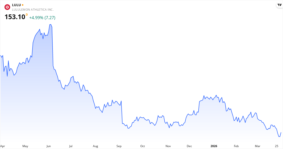 Lululemon Athletica wird zu einem KGV von 11.0 gehandelt, was unter dem Marktdurchschnitt liegt und auf einen attraktiven Preis hindeuten kann. Das Forward-KGV beträgt 11.6. Das KUV beträgt 1.5. Das KBV beträgt 3.4. Das PEG-Verhältnis beträgt 0.70 — unter 1,0 deutet darauf hin, dass die Aktie im Verhältnis zur Wachstumsrate günstig ist.