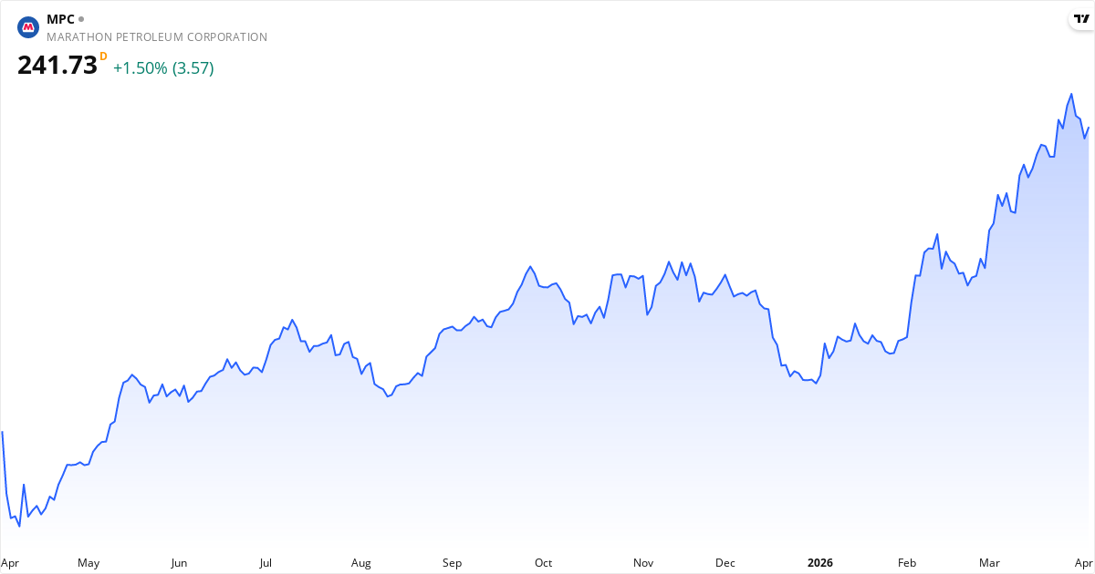 Die Zukunftsaussichten für Marathon Petroleum basierend auf aktuellen Daten: das durchschnittliche Kursziel der Analysten ist 223.78 $ (-7.4%); die Aktie befindet sich in einem Aufwärtstrend (über SMA50 und SMA200); der nächste Bericht wird am 05/05-2026 veröffentlicht, was den Kurs beeinflussen kann; das KGV ist 18.0 (moderat). Beachten Sie, dass Aktienkurse von vielen Faktoren beeinflusst werden, einschließlich Berichten, Makroökonomie und Marktstimmung. Historische Renditen sind keine Garantie für zukünftige Renditen.