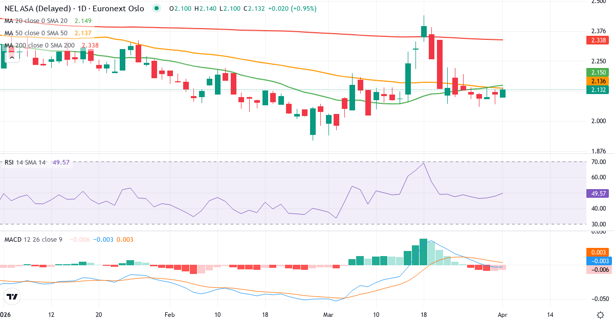 Death Cross: Der 50-Tage-Durchschnitt (2.14) liegt unter dem 200-Tage-Durchschnitt (2.34), was ein klassisches bärisches Signal für Nel ASA ist.