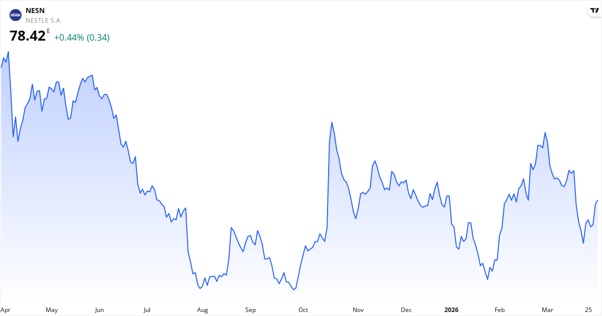 Golden Cross: Der 50-Tage-Durchschnitt (78.25) liegt über dem 200-Tage-Durchschnitt (77.12), was ein klassisches bullisches Signal für Nestlé S.A ist.