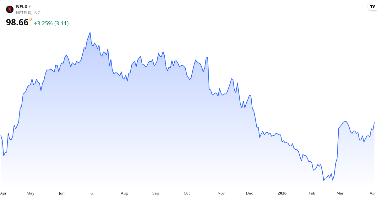 Die Zukunftsaussichten für Netflix basierend auf aktuellen Daten: das durchschnittliche Kursziel der Analysten ist 113.43 $ (+15.0%); der nächste Bericht wird am 16/04-2026 veröffentlicht, was den Kurs beeinflussen kann; das KGV ist 37.8 (hoch – der Markt erwartet Wachstum). Beachten Sie, dass Aktienkurse von vielen Faktoren beeinflusst werden, einschließlich Berichten, Makroökonomie und Marktstimmung. Historische Renditen sind keine Garantie für zukünftige Renditen.