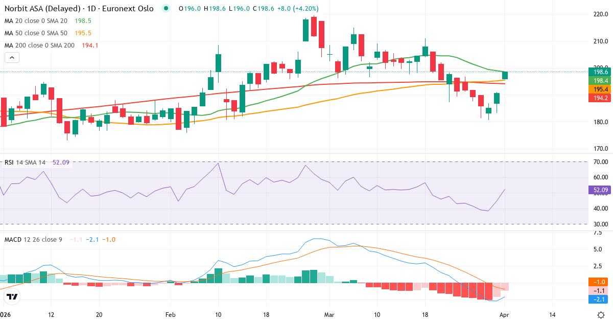Golden Cross: Der 50-Tage-Durchschnitt (195.15) liegt über dem 200-Tage-Durchschnitt (192.34), was ein klassisches bullisches Signal für Norbit ASA ist.