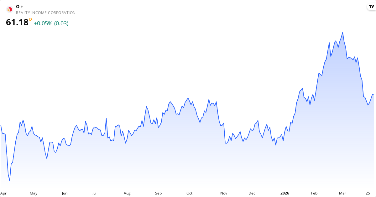 Realty Income veröffentlicht den nächsten Bericht am 06. Mai 2026. Die Aktie wird derzeit zu 61.58 $ gehandelt. Mit einem KGV von 51.9 wird der Markt genau beobachten, ob die Gewinne die Erwartungen erfüllen.