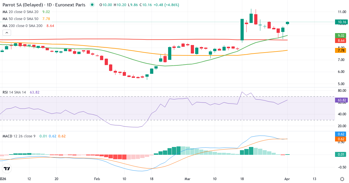 Das nächste Berichtsdatum von Parrot ist noch nicht verfügbar. Weitere Informationen finden Sie im Finanzkalender des Unternehmens.Technische Analyse von Parrot 2026 – Signal: Starker Kauf
