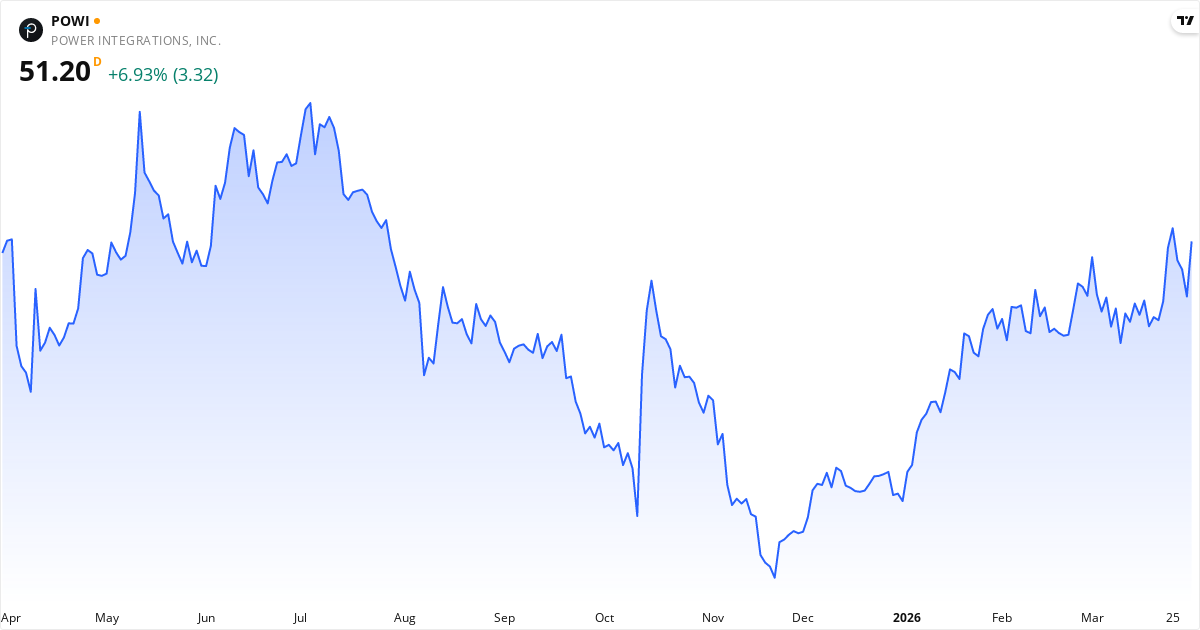Power Integrations Aktienkurs – Kursentwicklung 2026. Aktualisiert 01. Apr 2026.
