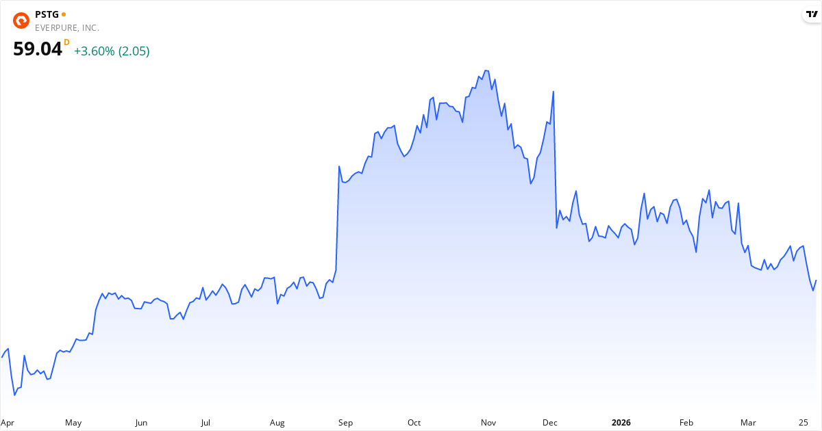 Pure Storage Aktienkurs – Kursentwicklung 2026. Aktualisiert 01. Apr 2026.